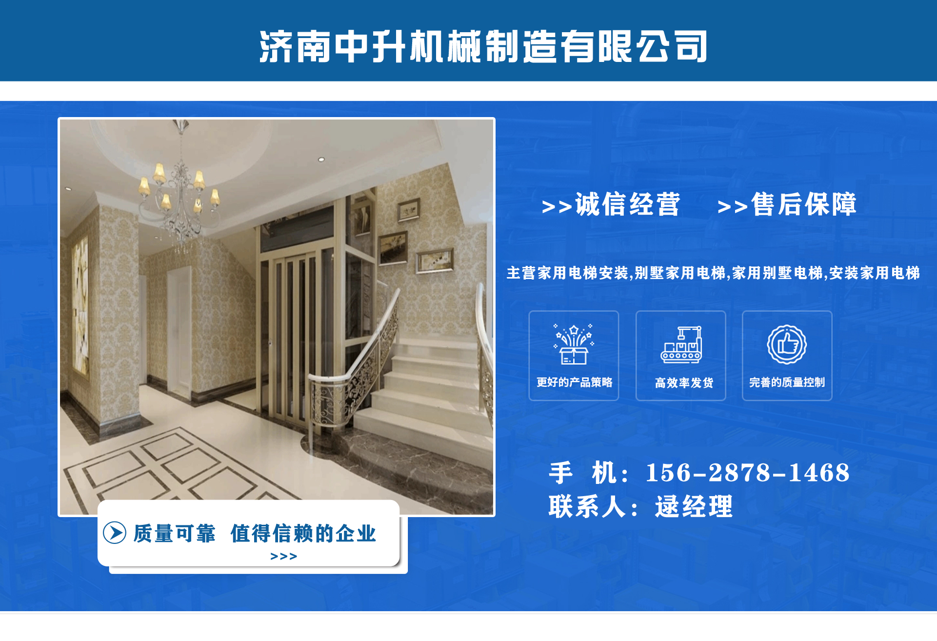 濟(jì)南中升機(jī)械制造有限公司主營(yíng)家用電梯安裝,別墅家用電梯,家用別墅電梯,安裝家用電梯等業(yè)務(wù),質(zhì)量可靠,值得信賴! 公司為客戶提供免費(fèi)上門測(cè)量,根據(jù)實(shí)際情況1對(duì)1服務(wù),保障符合用戶需求,終身提供售后服務(wù),讓用戶買的舒心用的放心。匠心團(tuán)隊(duì),打造信賴產(chǎn)品,我們有團(tuán)結(jié)、奮進(jìn)拼搏的匠心團(tuán)隊(duì),為您提供可信賴的品質(zhì)保證?! 膭?chuàng)立以來(lái)一直嚴(yán)格執(zhí)行質(zhì)量管理體系、環(huán)境管理體系等相關(guān)標(biāo)準(zhǔn)管理體系,“顧客滿意”是我們始終如一的追求。我們有屬于自己培養(yǎng)的安裝隊(duì)伍,24小時(shí)服務(wù)電話,為您提供可靠的服務(wù)與支持。 我們的愿景是建設(shè)國(guó)內(nèi)具有影響力的電梯公司,做城市美好空間的好伙伴。...